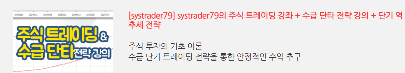 2. 자타가 공인하는 주식 단기 시스템 트레이딩의 최고 전략가, '닥터 퀀트의 단기 트레이딩 강좌'가 뉴지스탁에서 진행중입니다. 닥터 퀀트의 강좌에서는 그동안 공개하지 않았던 무려 50개 이상의 실전 트레이딩 전략과 주기적인 업데이트 강의가 제공됩니다~