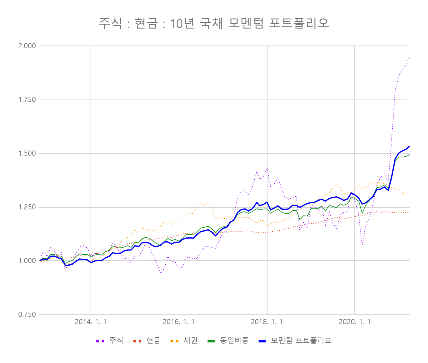- 현금 (KOSEF 국고채 ETF) : 50 %