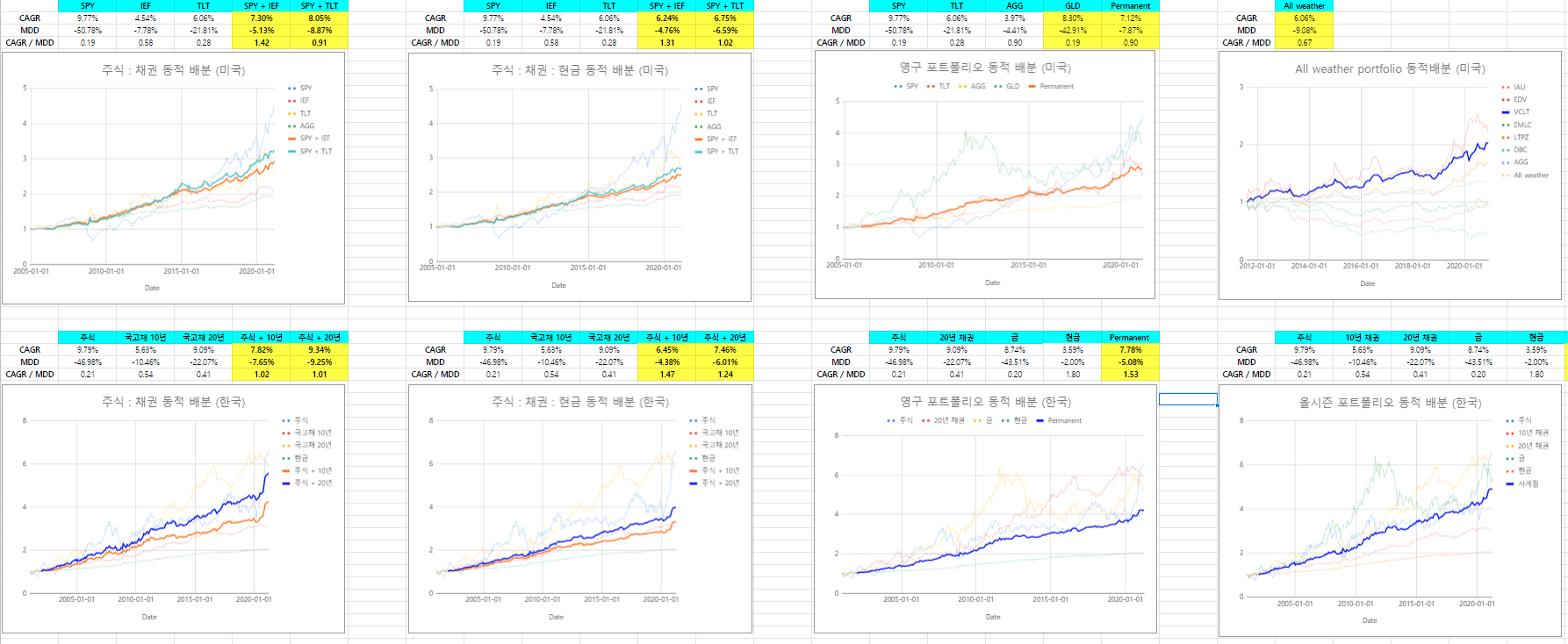* 국내 ETF, 미국 ETF를 활용한 다양한 정적, 동적 자산 배분 전략의 원리와, 백테스팅 스프레드시트를 제공합니다 (클릭)