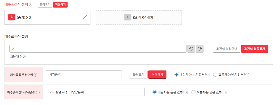다음으로, 퀀트 백테스팅의 핵심인 우선 순위 조건을 입력하겠습니다. 가장 널리 알려진 퀀트 모델은 파마-프렌치의 소형주, 가치주 모델이지요? 소형주가 대형주보다 수익률이 높고, 저평가 종목이 고평가 종목 보다 수익률이 높다는 것이지요.